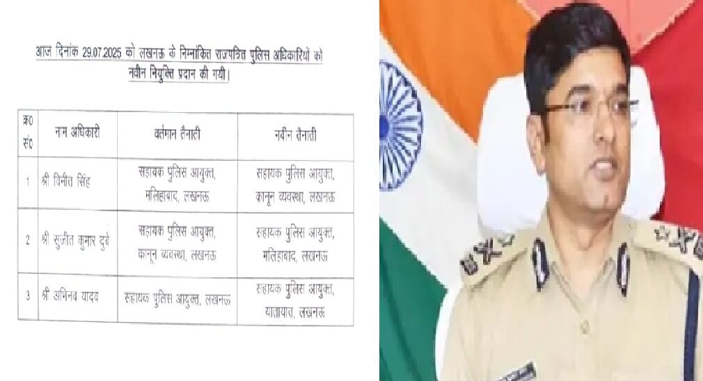 बता दें कि विनीत सिंह, जो वर्तमान में सहायक पुलिस आयुक्त, मलिहाबाद के पद पर कार्यरत थे, को अब सहायक पुलिस आयुक्त, कानून व्यवस्था, लखनऊ के पद पर नियुक्त किया गया है।सुजीत कुमार दुबे, जो सहायक पुलिस आयुक्त, कानून व्यवस्था, लखनऊ के पद पर कार्यरत थे, को अब मलिहाबाद का नया एसीपी बनाया गया है।अभिनव यादव को सहायक पुलिस आयुक्त, यातायात, लखनऊ के पद पर नई जिम्मेदारी सौंपी गई है।यह प्रशासनिक फेरबदल राजधानी में पुलिस व्यवस्था को और अधिक चुस्त-दुरुस्त बनाए रखने के उद्देश्य से किया गया है।