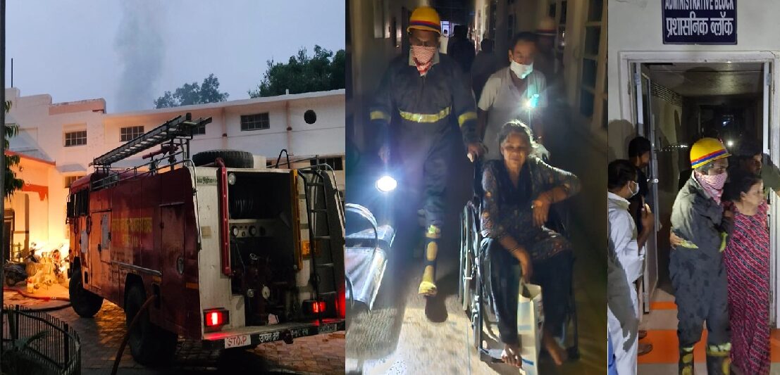 आग लगने के बाद इधर उधर भागने लगे मरीज व परिजन