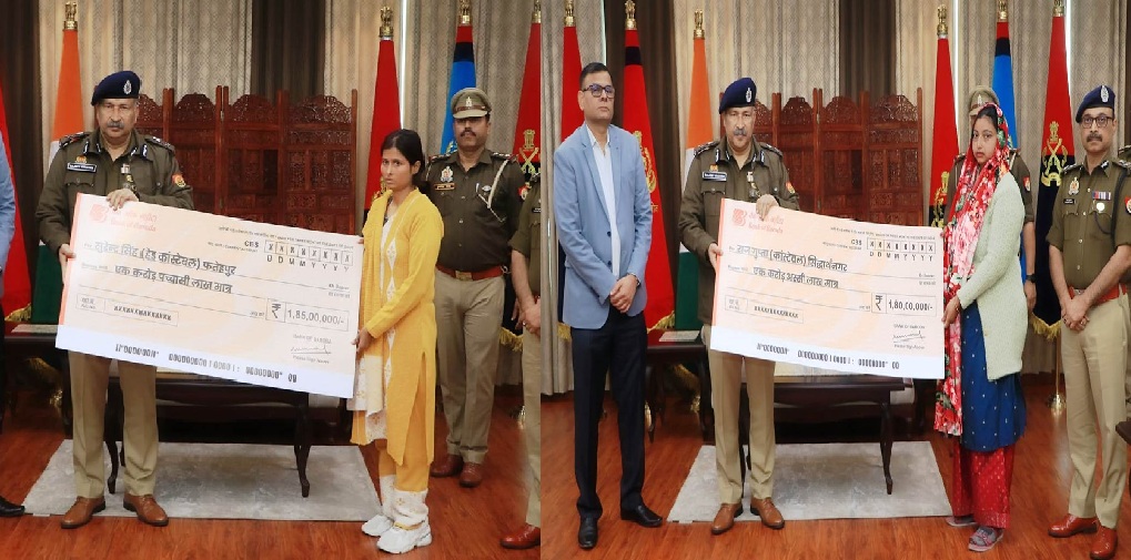 एसएमयूपीन्यूज, लखनऊ । पुलिस महानिदेशक उत्तर प्रदेश राजीव कृष्णा ने आज प्रदेश के विभिन्न जनपदों में ड्यूटी के दौरान मृत्यु को प्राप्त हुए पुलिस कर्मियों के आश्रित परिजनों को बैंक ऑफ बड़ौदा पुलिस सैलरी पैकेज के अंतर्गत स्वीकृत धनराशि के चेक प्रदान किए। कुल 14 करोड़ 15 लाख रुपये की आर्थिक सहायता प्रदान की गई।