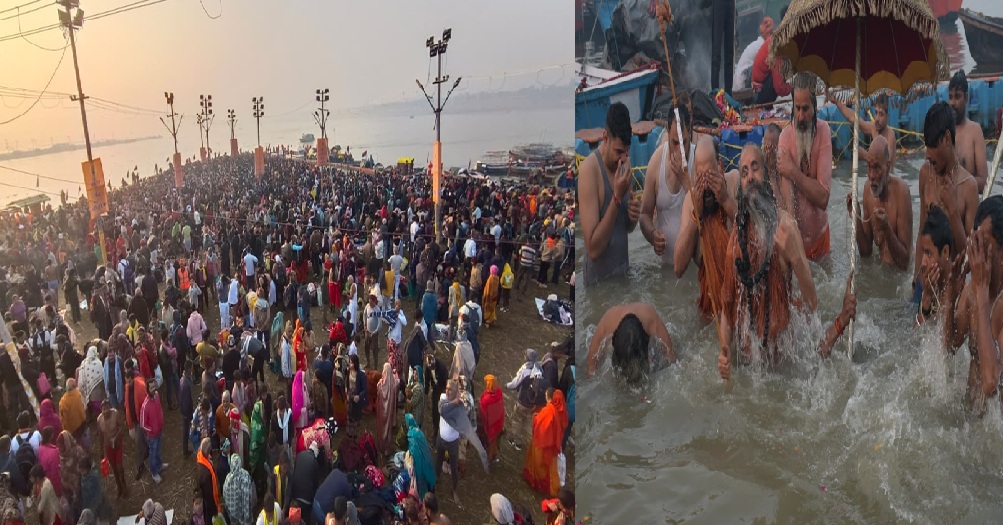 प्रयागराज। माघ मेला 2026 के द्वितीय स्नान पर्व मकर संक्रांति पर संगम नगरी प्रयागराज में आस्था और श्रद्धा का विराट दृश्य देखने को मिला। मेला प्रशासन के अनुसार इस पावन अवसर पर करीब 1 करोड़ 3 लाख श्रद्धालुओं ने त्रिवेणी संगम में पवित्र स्नान कर पुण्य लाभ अर्जित किया। इससे पहले एकादशी पर्व पर भी लगभग 85 लाख श्रद्धालुओं ने संगम में डुबकी लगाई थी।