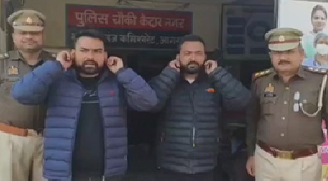 आगरा। यूपी के आगरा के शाहगंज थाना क्षेत्र में दहशत का पर्याय बने हिस्ट्रीशीटर भाइयों अनस और सारिक को पुलिस ने शनिवार रात चेकिंग के दौरान गिरफ्तार कर लिया। दोनों के कब्जे से एक-एक तमंचा बरामद किया गया है। गिरफ्तारी के बाद थाने में आरोपियों का कान पकड़कर माफी मांगते हुए वीडियो सोशल मीडिया पर वायरल हो रहा है, जिसे लेकर इलाके में चर्चाओं का दौर तेज है।