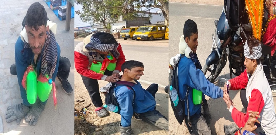 मथुरा। जब मन में सच्ची श्रद्धा और भक्ति का संकल्प हो तो शारीरिक सीमाएं भी आस्था के आगे झुक जाती हैं। इसका जीवंत उदाहरण हैं मथुरा की तहसील महावन के गांव आंगई दाऊजी निवासी दिव्यांग शिवभक्त धीरेंद्र सिकरवार। जन्म से ही दोनों पैर न होने के बावजूद धीरेंद्र राजघाट से मथुरा तक कांवड़ यात्रा पर निकले हैं। गले में गंगाजल की दो कट्टियां लटकाए जब वह सड़क पर बढ़ते हैं तो हर कोई उनके जज्बे को नमन करता है।