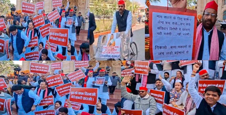 सपा विधायक हाथों में नारे लिखी तख्तियां लेकर विधानसभा पहुंचे और मतदाता सूची के विशेष गहन पुनरीक्षण (SIR) तथा फार्म-7 से जुड़े मुद्दों पर नारेबाजी की। विपक्ष का आरोप है कि इन प्रक्रियाओं के जरिए मतदाताओं को प्रभावित करने की कोशिश की जा रही है। नेता प्रतिपक्ष दल की वरिष्ठ नेता आराधना मिश्रा ‘मोना’ भी प्रदर्शन में शामिल रहीं और सरकार पर लोकतांत्रिक अधिकारों से खिलवाड़ का आरोप लगाया।