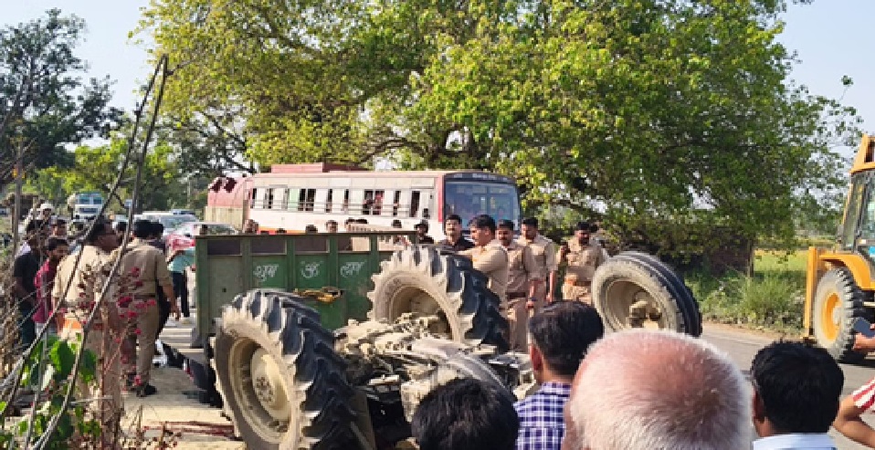 ट्रैक्टर-ट्रॉली अचानक पलट गई